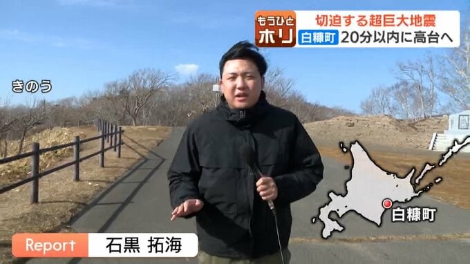 「ここ白糠町では巨大地震が起きた場合、道の想定によりますと海岸からおよそ5キロメートルほど離れた地点まで津波が到達するとみられています」