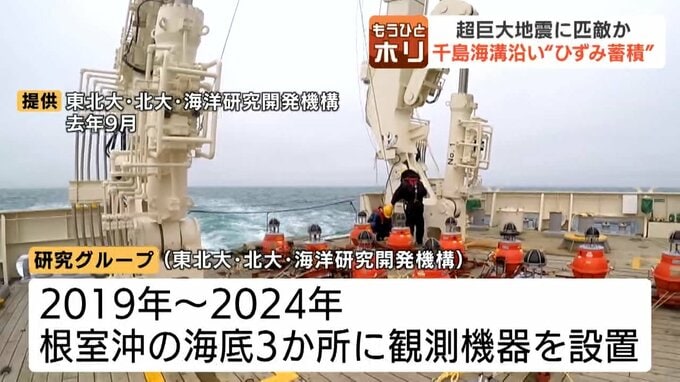 東北大と北大などの研究グループは、2019年からのおよそ5年間、根室沖の海底3か所に観測機器を設置。地殻変動を計測することで、超巨大地震が起こる可能性を調査してきました。