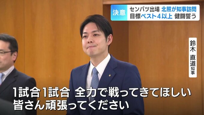 3月開幕のセンバツ高校野球に出場する北海道小樽市の北照高校が鈴木知事を訪ね、健闘を誓いました。