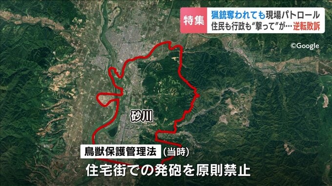 当時の鳥獣保護管理法は、住宅街での発砲を原則禁止していました。