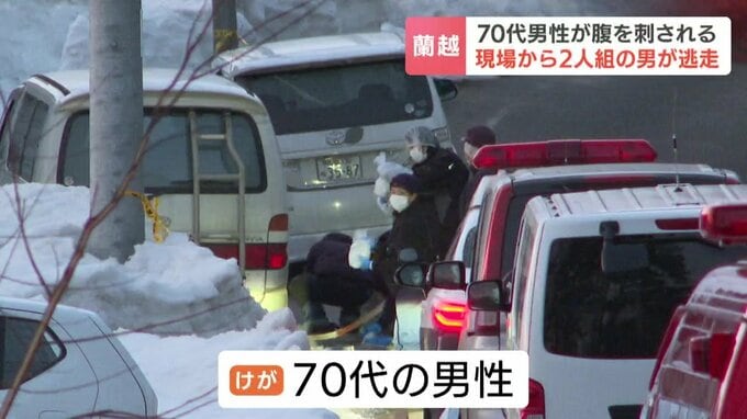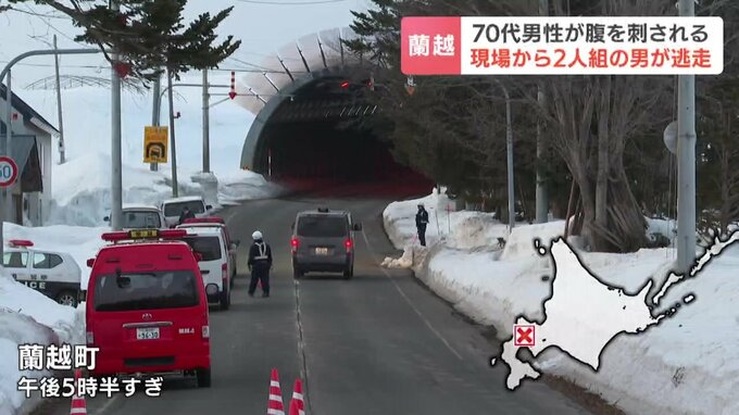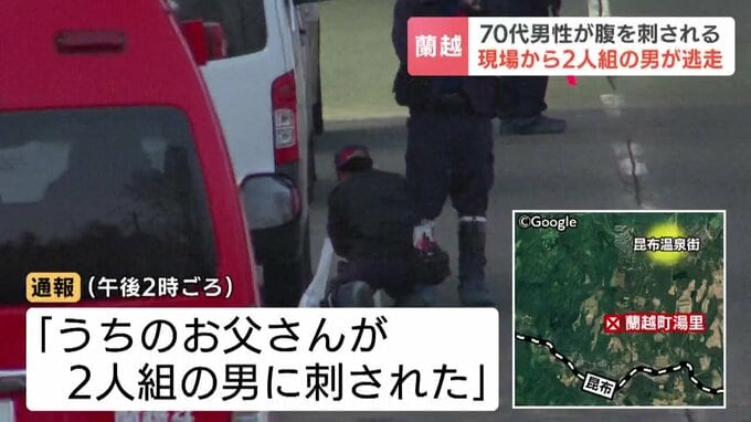 北海道蘭越町で25日午後、70代の男性が路上で2人組の男に腹を刺されました。