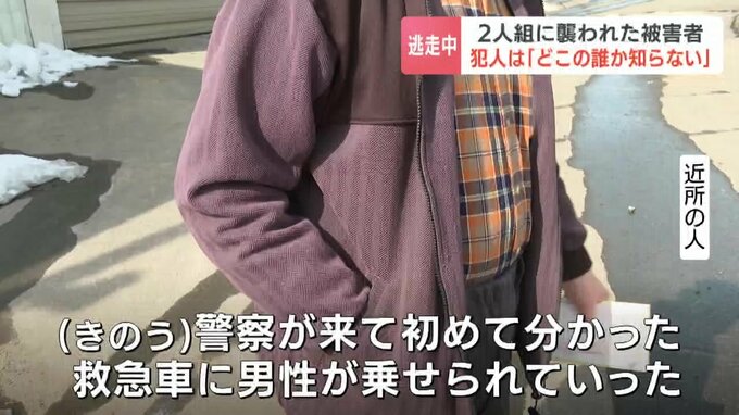 警察によりますと、男性は2人組について「(逃げた2人は)どこの誰だかまったく知らない人」と話しているということです。