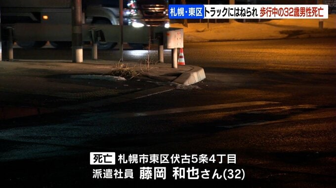 警察によります、はねられたのは札幌市東区の派遣社員、藤岡和也さん32歳で、藤岡さんは意識がない状態で病院に運ばれ、その後、死亡が確認されました。