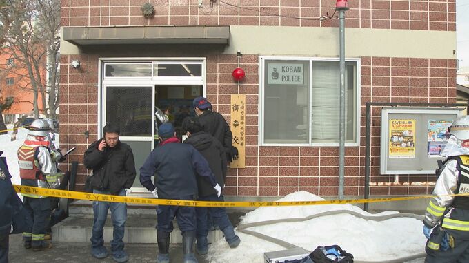 交番を通りかかった人が、雪をかけて消火し、床や建物に延焼はありませんでした。
