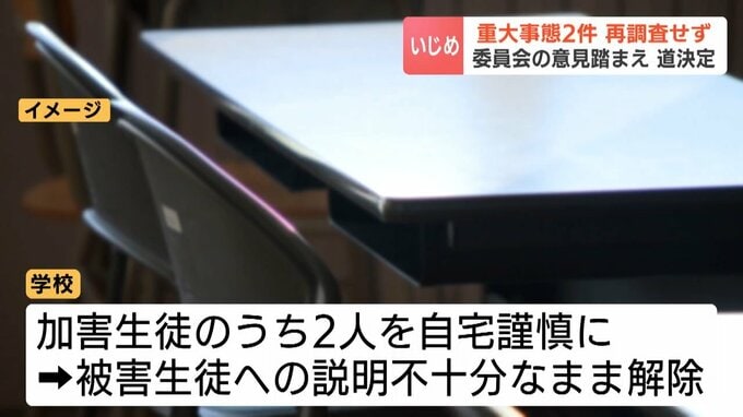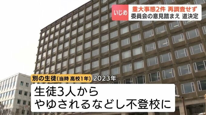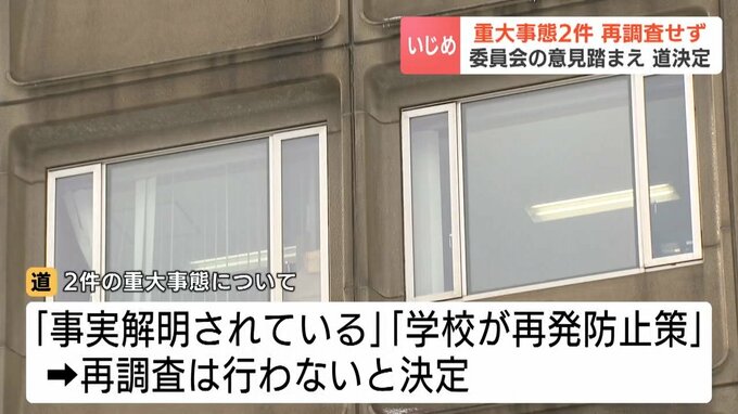 北海道はいずれの重大事態についても、「事実解明がされている」「再発防止に向けた対策を取った」などとし、再調査を行わないと決定したということです。