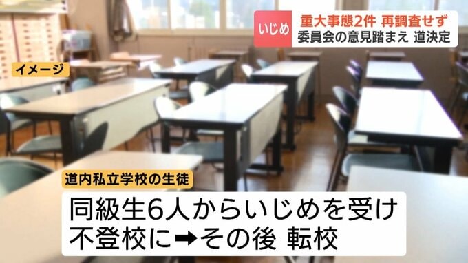 北海道は道内2つの私立学校で起きた「いじめによる重大事態」について、再調査を行わないと発表しました。