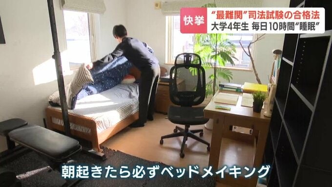 「最初はうつ伏せで1分ぐらいしたら上体を起こした方が寝やすかった。朝起きたら、必ずベッドメイキングをする。ルーティン化でなにも考えずに行動できて、自然とすぐ机に向かえる」