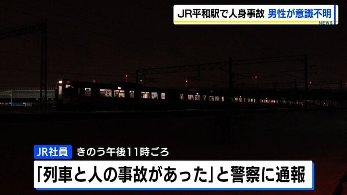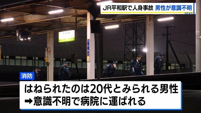 消防によりますと、列車にはねられたのは20代の男性とみられ、意識不明の状態で病院に運ばれました。