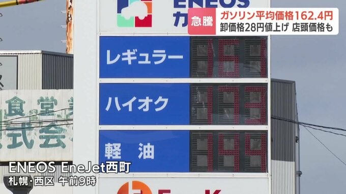 11日に公表された北海道内最新のガソリン平均価格は4週連続の値上がりです。さらに、石油元売り各社が卸価格を大幅に引き上げる影響で、12日以降の店頭価格も一気に跳ね上がりそうです。