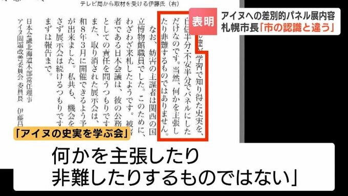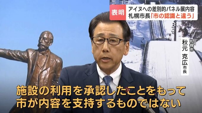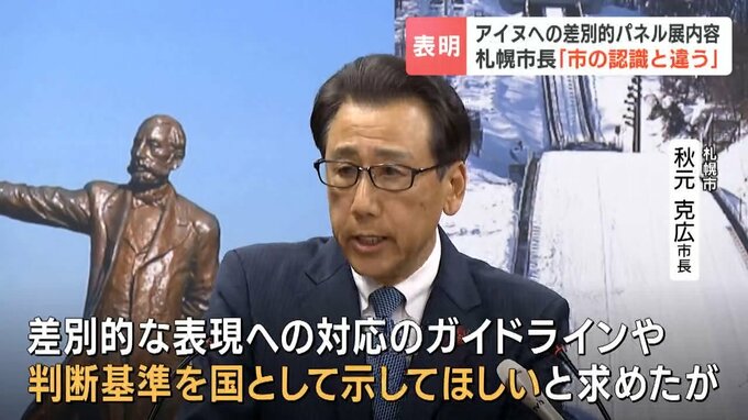 2025年、札幌市の地下歩行空間で開かれたアイヌ民族への差別的な内容を含むパネル展の内容について、秋元市長は11日の記者会見で「市の認識とは違う」との立場を表明しました。