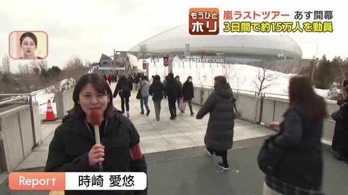 「嵐ラストライブの会場となっている大和ハウスプレミストドームです。きょうはグッズ販売とあって多くの人が訪れています」