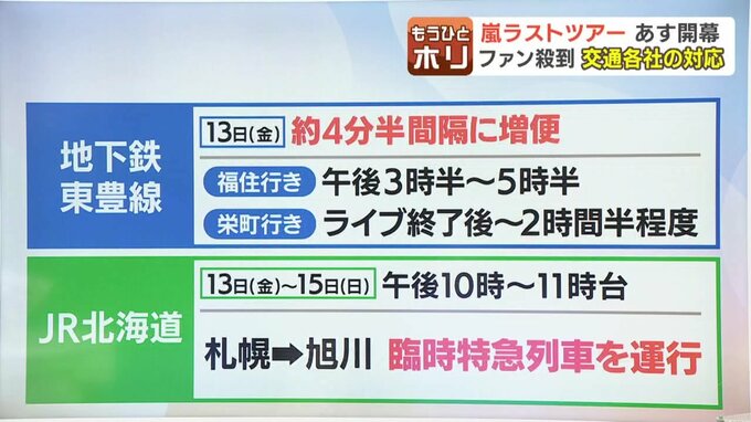 ▶JR北海道は、ライブ期間中、札幌発・旭川行きの臨時特急列車を午後10時台と午後11時台に運行します。