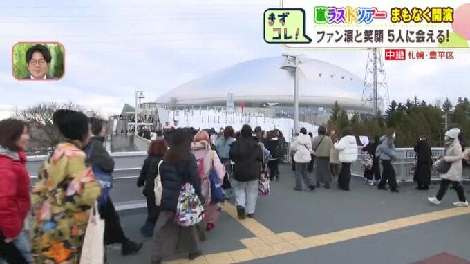 ツアー初日で熱気が高まっている大和ハウスプレミストドーム前です。北海道内はもちろんですが、福岡、大阪、さらには上海など国境を越えてファンが集結しています。