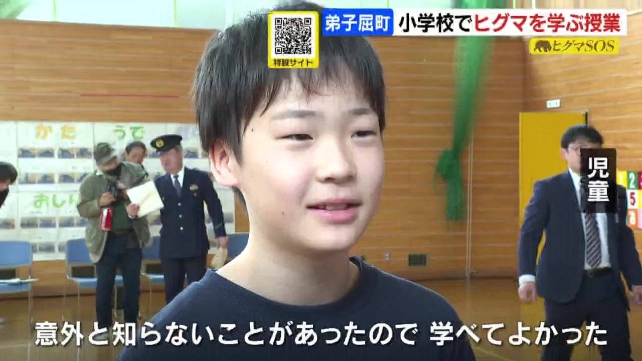 この授業はヒグマの行動が活発になる春を前に、クマに対する知識を学んでもらおうと弟子屈町などが企画しました。
