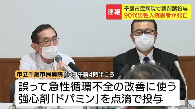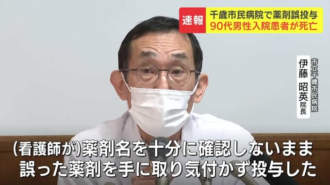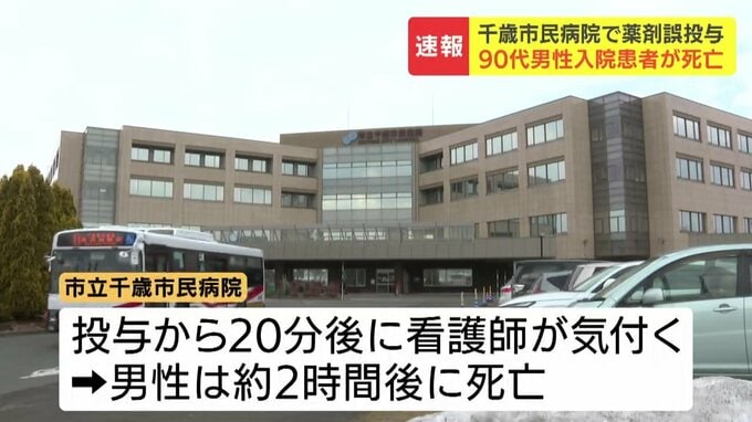 北海道千歳市の市立千歳市民病院で今月13日、入院中の90代の男性が誤った薬剤を投与され死亡していたことがわかりました。