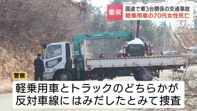 警察が軽乗用車かトラックのどちらかが反対車線にはみ出したとみて当時の状況を調べています。