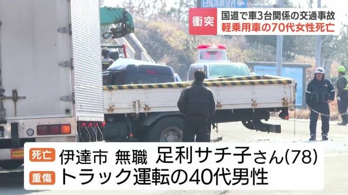 この事故で、軽乗用車を運転していた伊達市の無職、足利サチ子さん78歳が運ばれた病院で死亡が確認されました。
