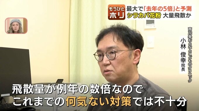 「シラカバについては特に平均よりも多いと予想されますので、そのシラカバの花粉が飛び始める4~5月頃は特に気をつけてほしいと思います」