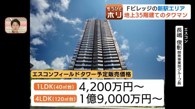 「1LDK 40㎡4200万円台から、エグゼクティブフロアーでは4LDK120㎡台1億9000万円台からを予定。購入者特典には、エスコンフィールドHOKKAIDO ジェネラルアドミッション(入場券)を2年分の進呈予定」
