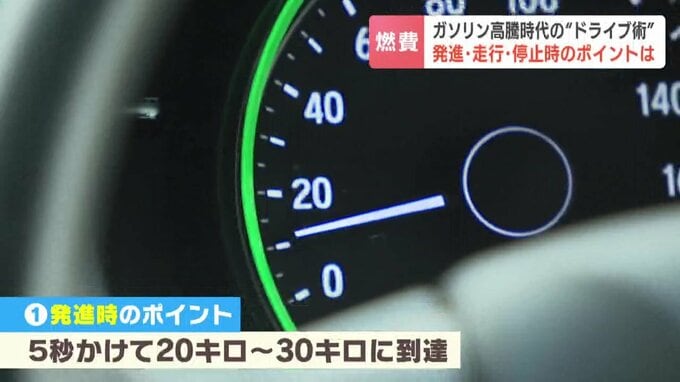 「今のは燃費がよくない感じですね。アクセルを踏む時に燃料をたっぷり使ってしまうので。目安としては、5秒かけて20キロ~30キロに到達するくらい優しく踏んでもらえると…」