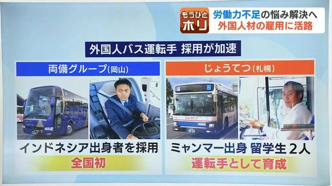 岡山市のバス会社は去年、国内では初めて、外国籍=インドネシア出身の男性を、運転手として採用し、いま東京などで活躍しています。