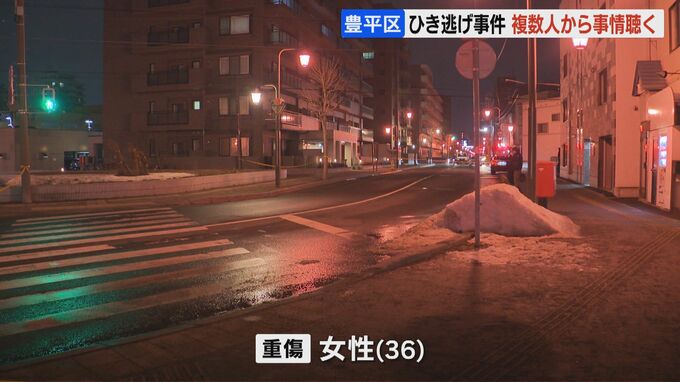 23日夜、札幌市豊平区で横断歩道を渡っていた女性が乗用車にはねられてけがをしたひき逃げ事件で、警察は逃げた車に似た、複数の車の持ち主から事情を聴いています。