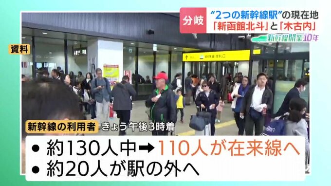 このうち110人は、まっすぐ在来線の乗り換え口に向かい、新函館北斗駅で降りたのは20人ほどでした。