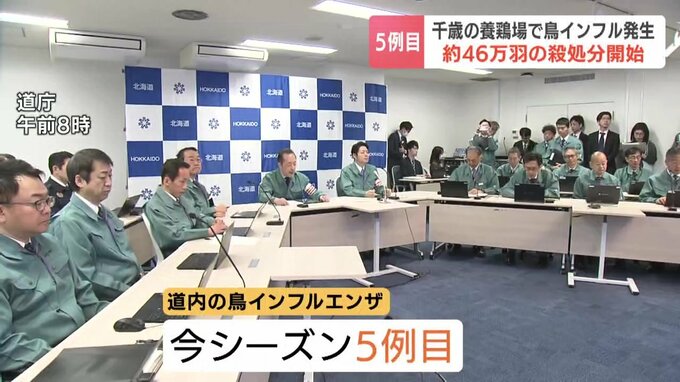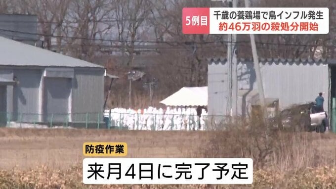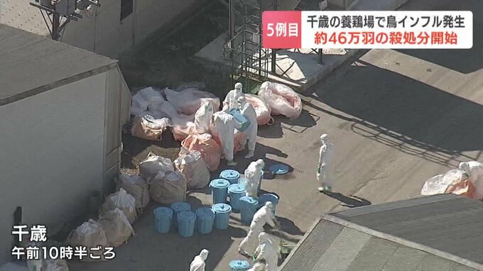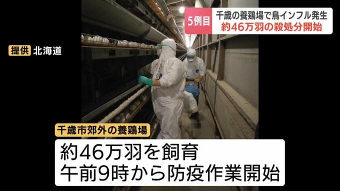 千歳市の養鶏場で高病原性鳥インフルエンザが発生し、北海道は、25日朝から46万羽のニワトリの殺処分を始めました。