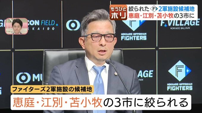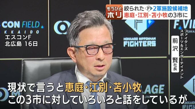 ファイターズ2軍施設の候補地を、事実上、恵庭・江別・苫小牧の3市に絞ったことを明らかにしました。
