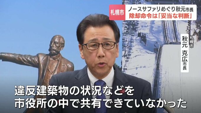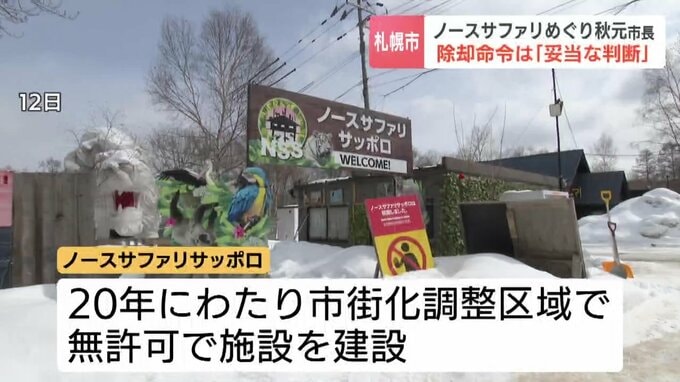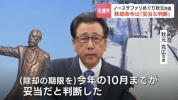 無許可開発が問題となり、除却命令が出されている札幌市南区のノースサファリサッポロについて、秋元市長は命令は「妥当な判断」と強調しました。