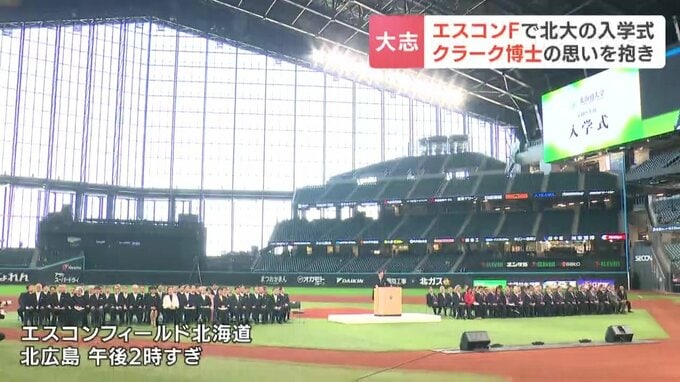 クラーク博士の思いを新入生に伝えようと、北広島での入学式が企画されました。