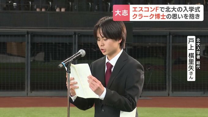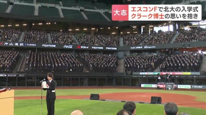約2600人の新入生は、クラーク博士が学生らにエールを贈ったゆかりの地で大志を抱いていました。