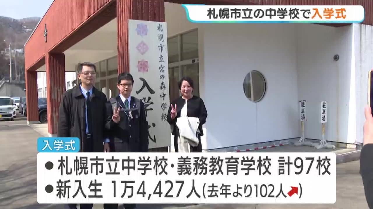 9日は札幌市立の中学校と義務教育学校、あわせて97校で入学式が行われ、去年より102人多い1万4427人が新しいスタートをきりました。