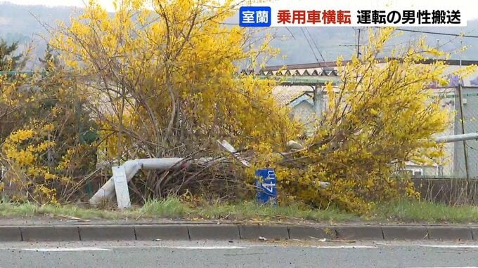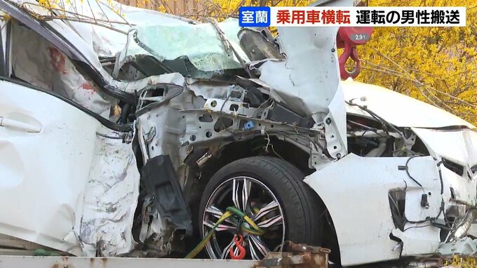26日午後2時半ごろ、北海道室蘭市港北町1丁目の国道37号で乗用車が横転しました。