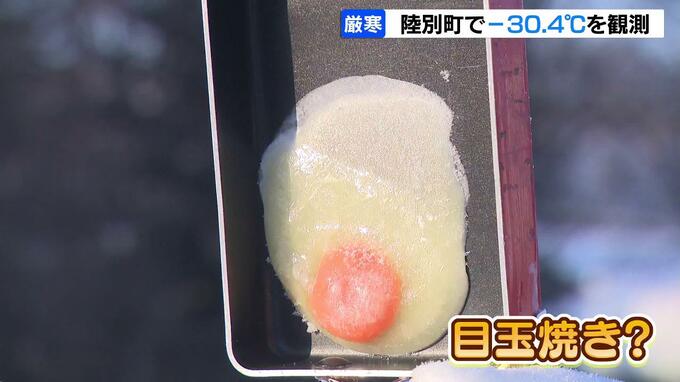 北海道陸別町で-30.4℃観測…フライパンに卵を落とすと3分で凍結“目玉焼き”に 札幌市では滝が「氷瀑」に 2023年1月23日(月) 12:24 国内 道内は、厳しい冷え込みとなり、北海道東部の陸別町では、マイナス30.4度を観測しました。 23日朝の道内は、晴れて放射冷却が強まった影響で気温が下がり、現在も、道内すべての観測地点で、マイナスの気温となっ…