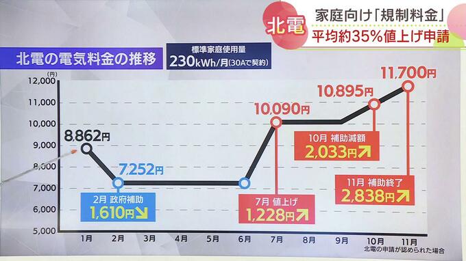 北電が電気料金大幅値上げへ…標準的家庭でどれくらい上がる?すでに上がっているという声があるのはなぜ? 2023年1月27日(金) 06:01 国内 北電が26日、電気料金の値上げを国に申請しました。これが認められた場合、値上げが始まるのが6月からになります。 しかし、今月の支払いからすでに料金は上がったと感じている人も多いかなと思うんですが、札幌…