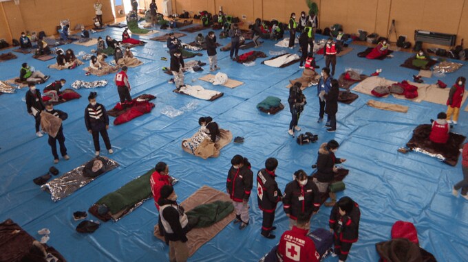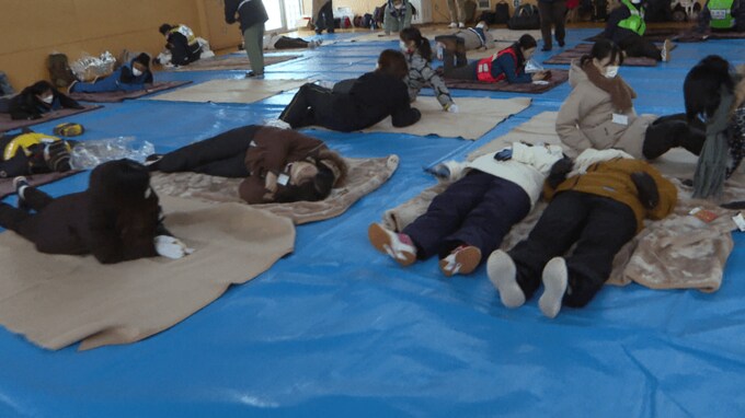 自治体や医療関係者など約100人が参加し、避難所の運営や避難生活を体験しました。