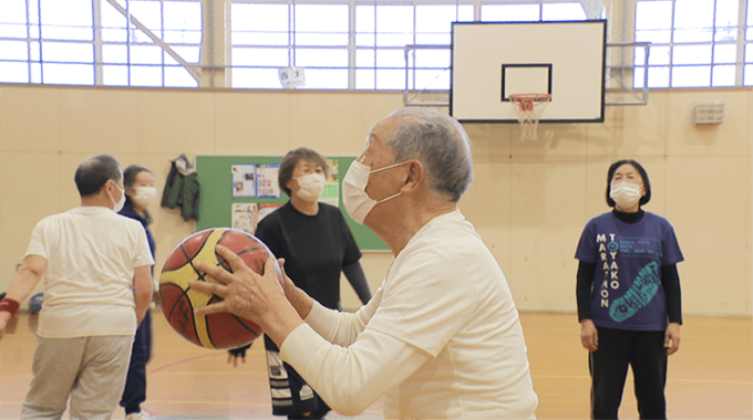 在間さんは日本国内で最高齢のバスケットボールプレーヤーなんです。