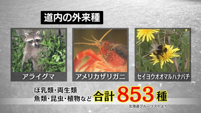 北海道に入ってきてしまった外来生物をまとめた北海道ブルーリストによると、哺乳類や昆虫、植物を合わせると853種類も指定されています。