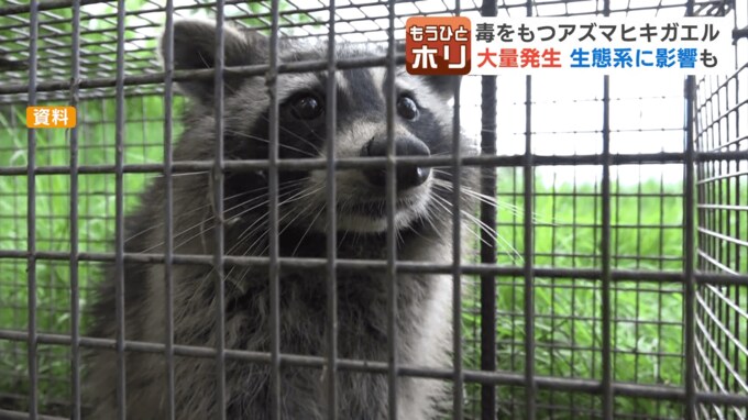 アズマヒキガエルの天敵は、実はアライグマ。ただ、そのアライグマも、年間1億円を超える農業被害を出すと言われる外来種です。アライグマがこのカエルを餌にして、さらに増えることも懸念されています。