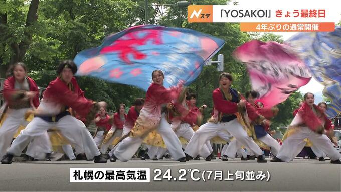「YOSAKOIソーラン祭り」最終日 240チーム2万4000人笑顔いっぱいの演舞 今夜ファイナルステージで“大賞”決定 2023年6月11日(日) 18:04 国内 札幌の初夏を彩るYOSAKOIソーラン祭りは、11日が最終日です。 参加チームの演舞もクライマックスにむけ熱を帯びています。 YOSAKOIソーラン祭り(11日・札幌市) 11日の札幌市は最高気温が7月…
