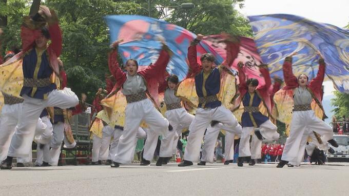 32回目となる今回は、およそ240チーム、2万4000人が参加、踊り手たちは4年ぶりにマスクを外して笑顔をいっぱいの踊りを披露しています。