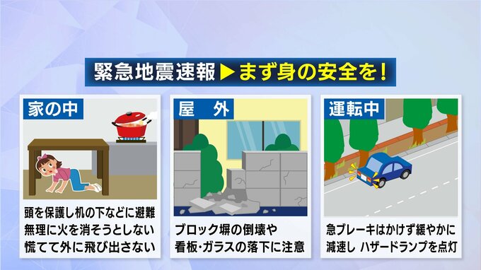 緊急地震速報がでた時には、まず身の安全を第一に考えてください。