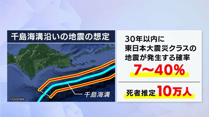 千島海溝沿いの地震とは、30年以内に東日本大震災クラスの地震が発生する確率が7%から40%と予測されているものです。