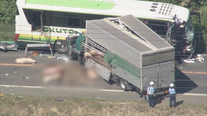 警察は、付近を走る車のドライブレコーダーの記録などから、65歳の男性が運転していたトラックが反対車線にはみ出したと見て、業務上過失致死傷の疑いも視野も、調べています。