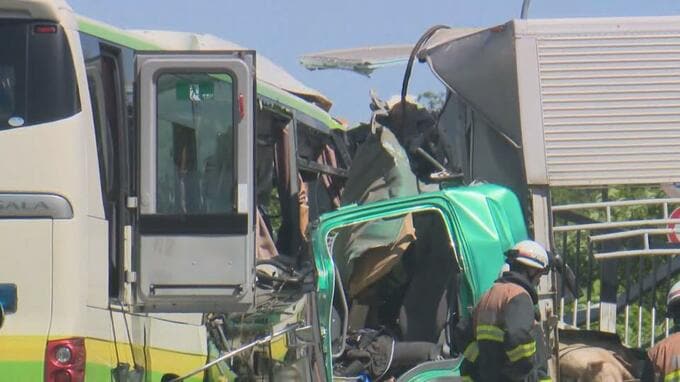 衝突の弾みで、バスの運転手は3列目の座席付近まで飛ばされ、バスにめり込んだトラックの運転席が見えたと言います。