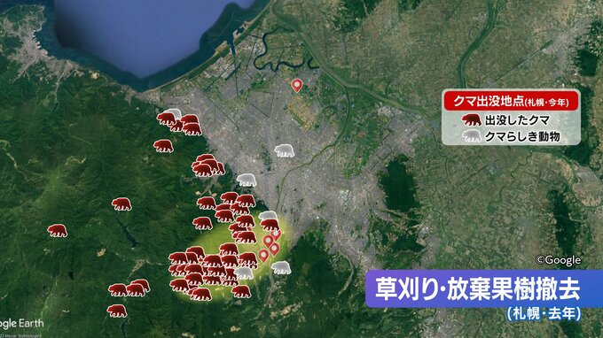 「クマが出る前の対策」=見通しをよくする草刈りや放棄果樹の撤去のボランティアは、去年、9か所行われましたが、うち8か所は南区。