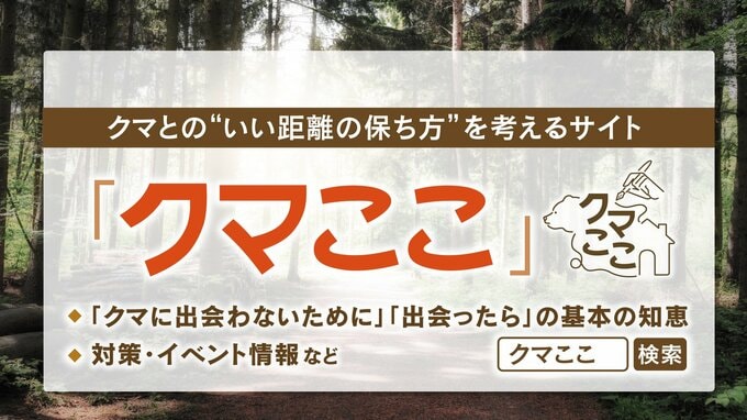 HBCのまとめサイト「クマここ」では「クマに出会わないためにできること」「クマに会ったらどうするか」などを専門家の監修のもと、まとめています。