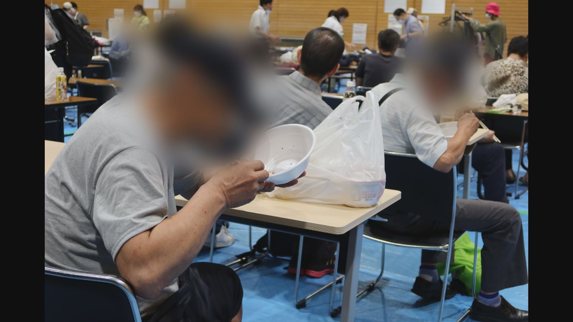 8月19日午後6時過ぎ、札幌市内のある公共施設に、2階から1階まで続く長い行列ができていました。大きな荷物をいくつも抱えたり、キャリーバックを引いたりしている老いも若きも男性も女性もが成す列です。大塚さんが関わる「老福会」が開いた“炊き出し”にやって来た人たちでした。