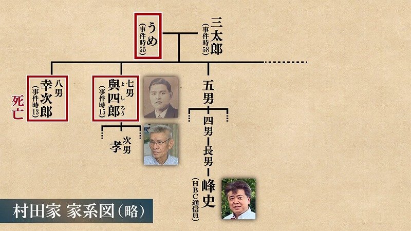 当時13歳だった村田家の8男・幸次郎は一撃で死亡。続いて母親の村田うめ、7男の與四郎(よしろう)が襲われました。